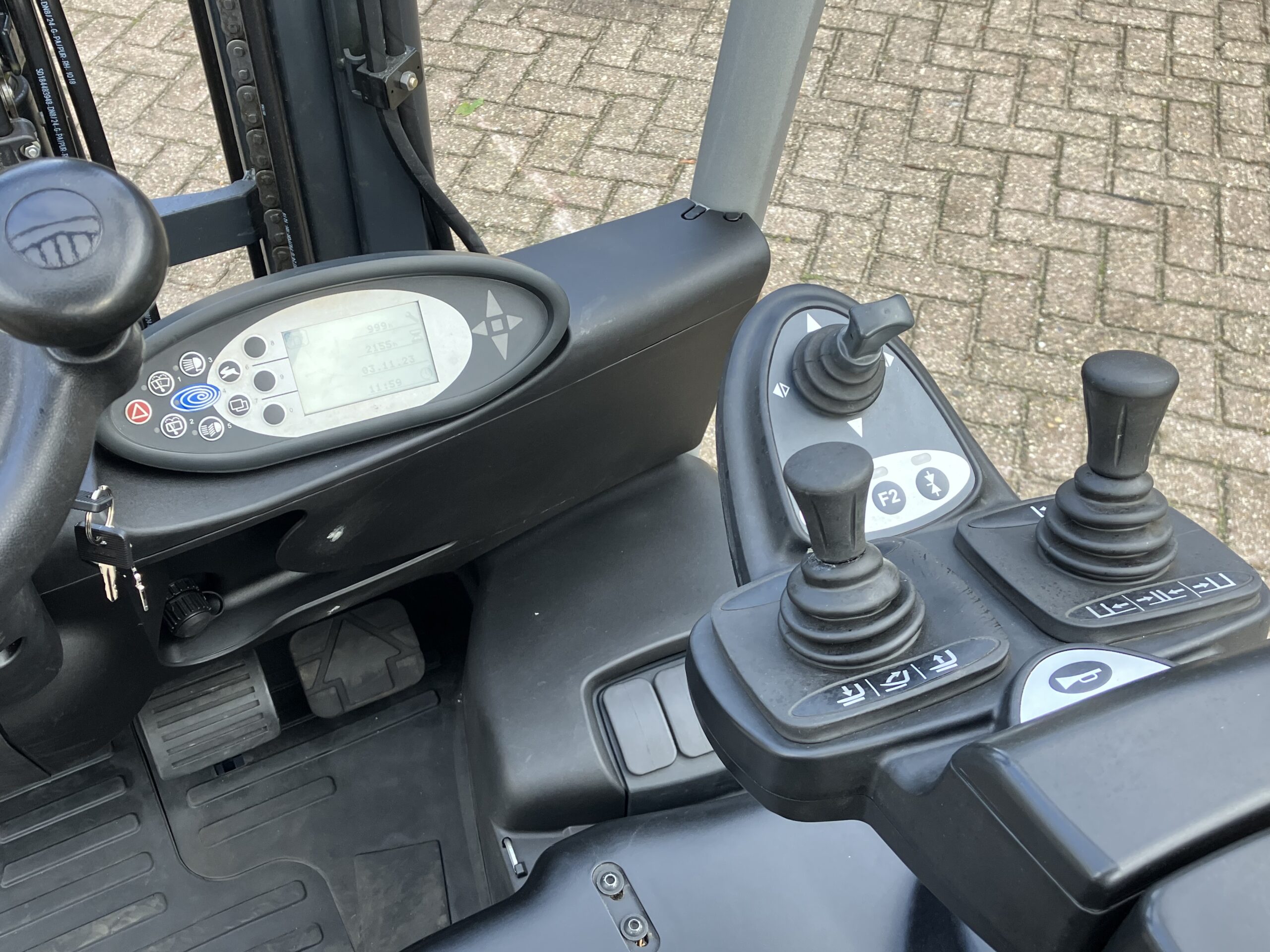 Voorzien van: triplo mast / 4x hydraulische aansluiting / mini hendel bediening op armsteun