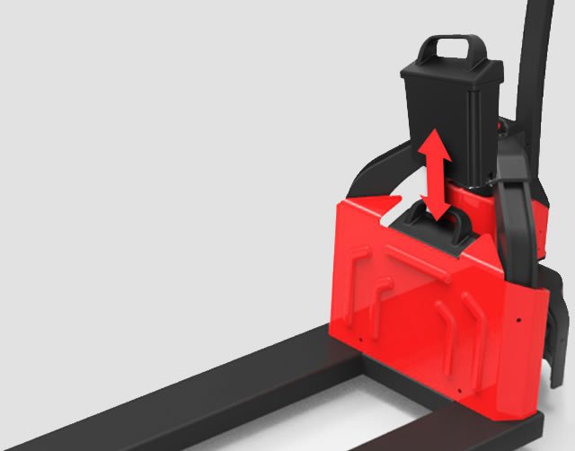 Dankzij het uitneembare Li-ion energiepakket en de bijpassende compacte 230V lader kan deze palletwagen makkelijk mee in de vrachtwagen en tussentijds opgeladen worden. Met een half uur laadtijd kan de batterij al voor 50% opgeladen worden en met een volle batterij is de MPT12 tot wel 3 uur inzetbaar.
